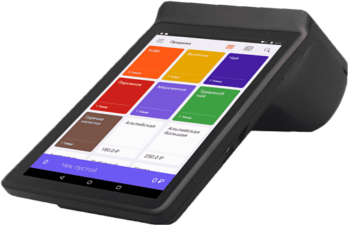 Имеет встроенный аккумулятор, передает данные с помощью Wi-Fi и SIM-карты. Можно одновременно подключить сканер, весы, пинпад и денежный ящик.