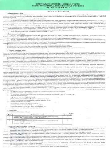• шифровальное (криптографическое) средство защиты фискальных данных фискальный накопитель "ФН-1.2 исполнение Эв15-3".