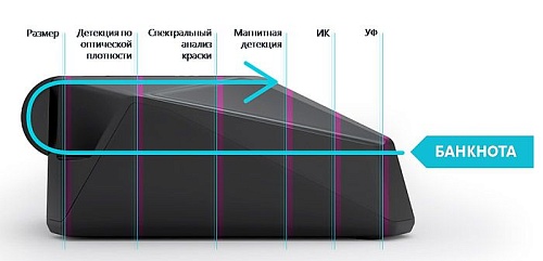 UV: контроль в УФ диапазоне / MG: магнитная детекция / IR: контроль ИК защиты / DD: контроль оптической плотности / SP: спектральный анализ краски