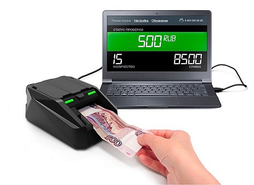 Компактный автоматический детектор банкнот Pro MONIRON DEC POS с индикатором, который светится зеленым(банкнота настоящая) или красным(банкнота сомнительная) цветом. Имеется разъем USB для связи с компьютером, с помощью которого можно расширить функционал устройства. Детектор обладает следующими видами детекции: