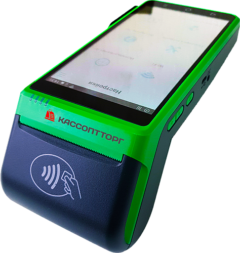Онлайн кассовый аппараат со встроенным банковским терминалом оплат - эквайрингом. Имеет встроенную камеру для считывания штрих-кодов. Интегрируется с бесплатно кассовой программой Бифит-Касса.