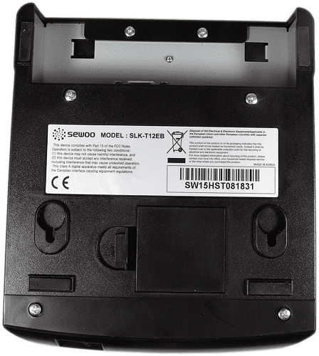 Принтер чеков Sewoo LK-T12EB с интерфейсами RS-232, Ethernet, USB. Принтер имеет скорость печать 200 мм в секунду и разрешение печати 180 dpi. Совместим с Windows, Linux, MacOS. Универсальный по функциям принтер чеков с достаточно обширными возможностями. Позволяет пользоваться чековой лентой от 50 до 85 мм, печатает графические логотипы и двухмерные QR-коды. Возможно не только проводное подключение к сети Интернет, но и беспроводное через Wi-Fi. Эргономичное и легкое в использовании устройство. На нижней панели имеются крепления для горизонтального расположения принтера.